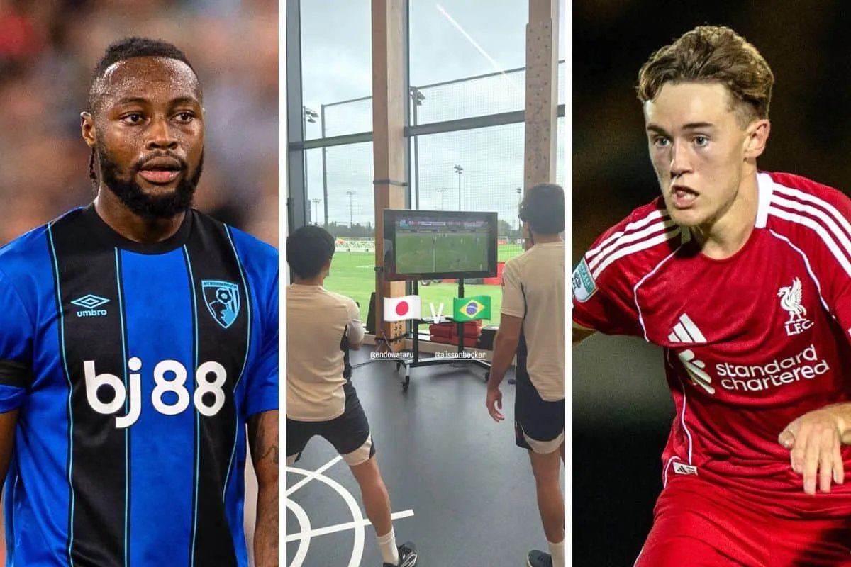 • Wataru Endo and Alisson were pictured in the gym of the AXA Training Centre watching their respective nations, Japan and Brazil, play each other in a friendly on the tele – Endo’s Japan came from two down to win 3-2, with former Red Takumi Minamino scoring!
