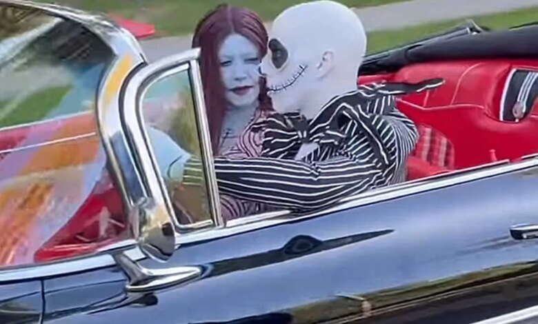 - Kourtney Kardashian and Travis Barker dressed as Sally and Jack Skellington — the beloved characters fromThe Nightmare Before Christmas —for Halloween
