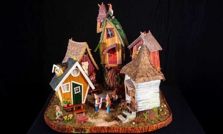 Adult grand-prize winner Mary Hilsman wowed judges with “The Tiny Gnome Builders,” a whimsical village of lopsided gingerbread homes. Each structure was packed with delicate details, from shingled roofs to miniature gardens.