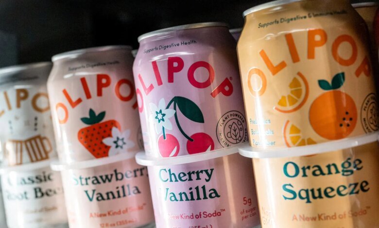 Olipop soda at a store in San Francisco, California, US, on Monday, March 17, 2025. Olipop Inc., the high-fiber, lower-sugar soda startup, raised $50 million in a Series C funding round at a valuation of $1.85 billion.