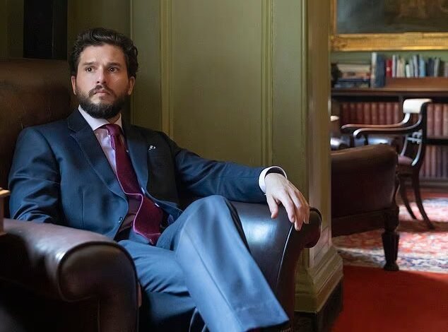 The star, who plays the aristocratic Henry Muck in Industry spoke to GQ about how dressing like a member of the upper classes is less a matter of money, and about following the sartorial ‘hidden rules’. Pictured in the show